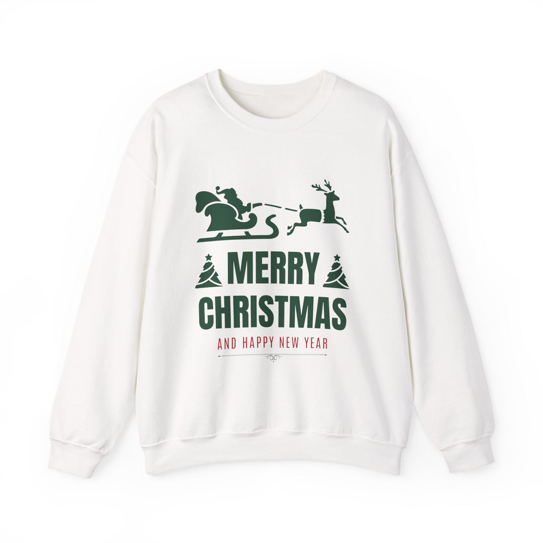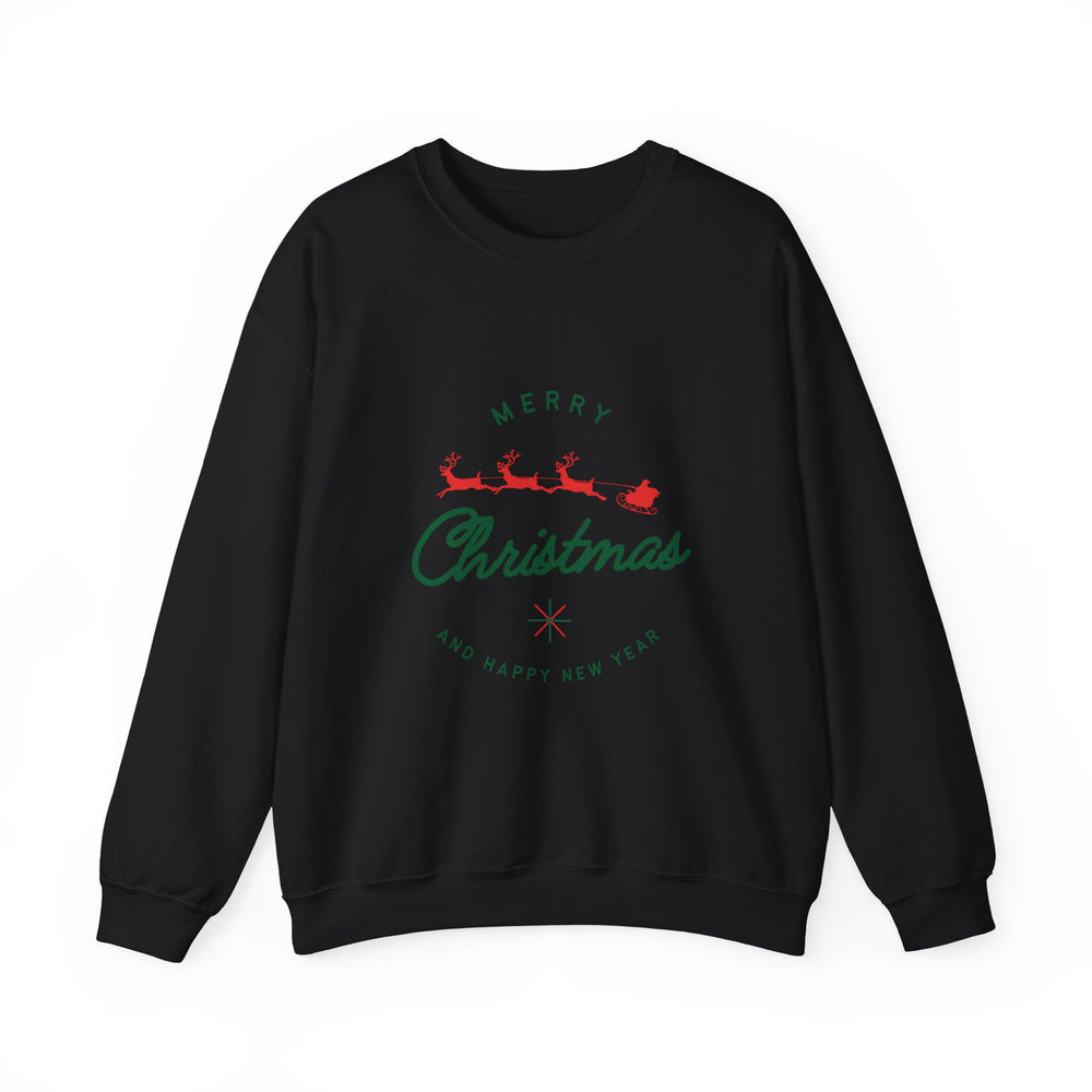 Christmas Sweatshirt - 'Merry Christmas and Happy New Year' Santa Sleigh Crewneck