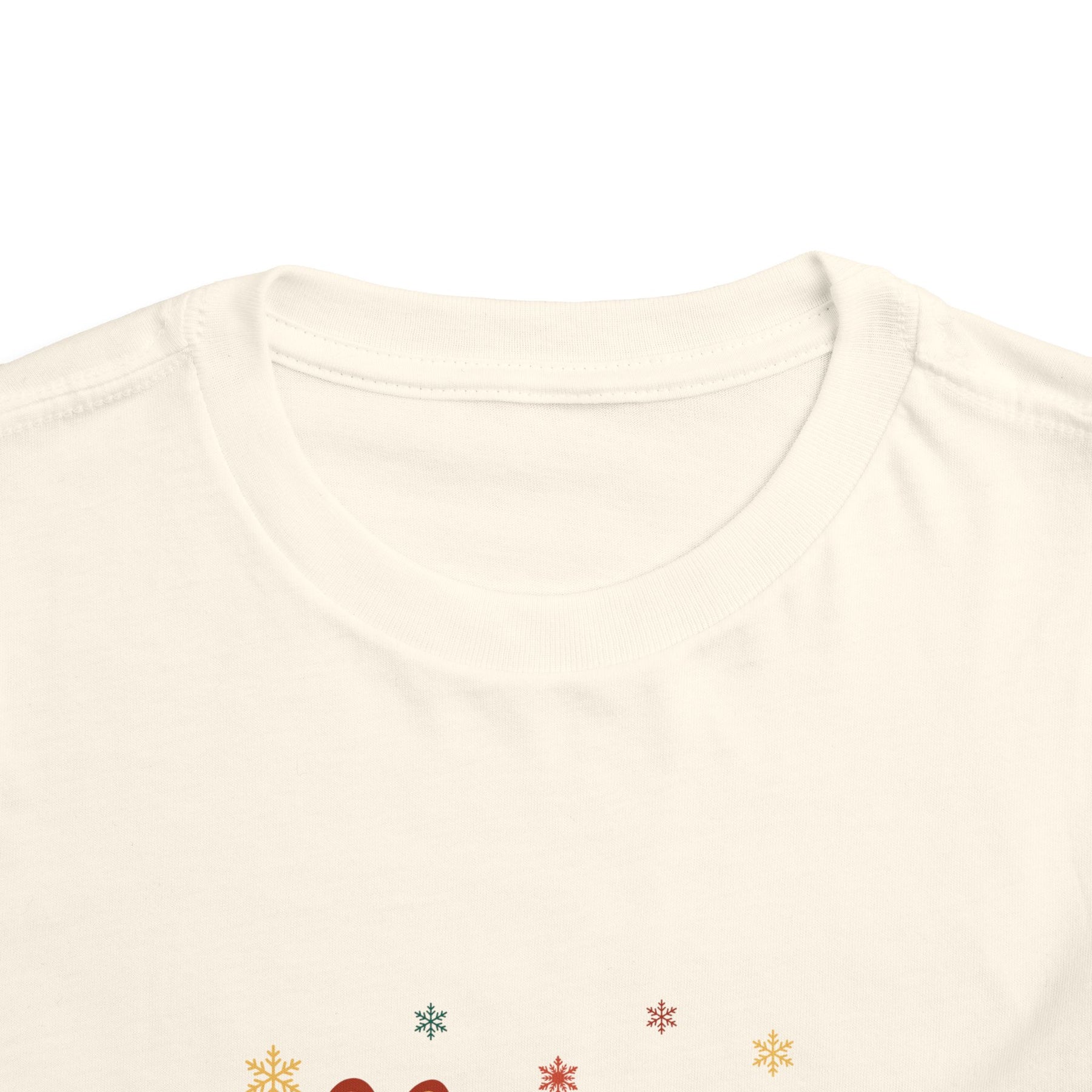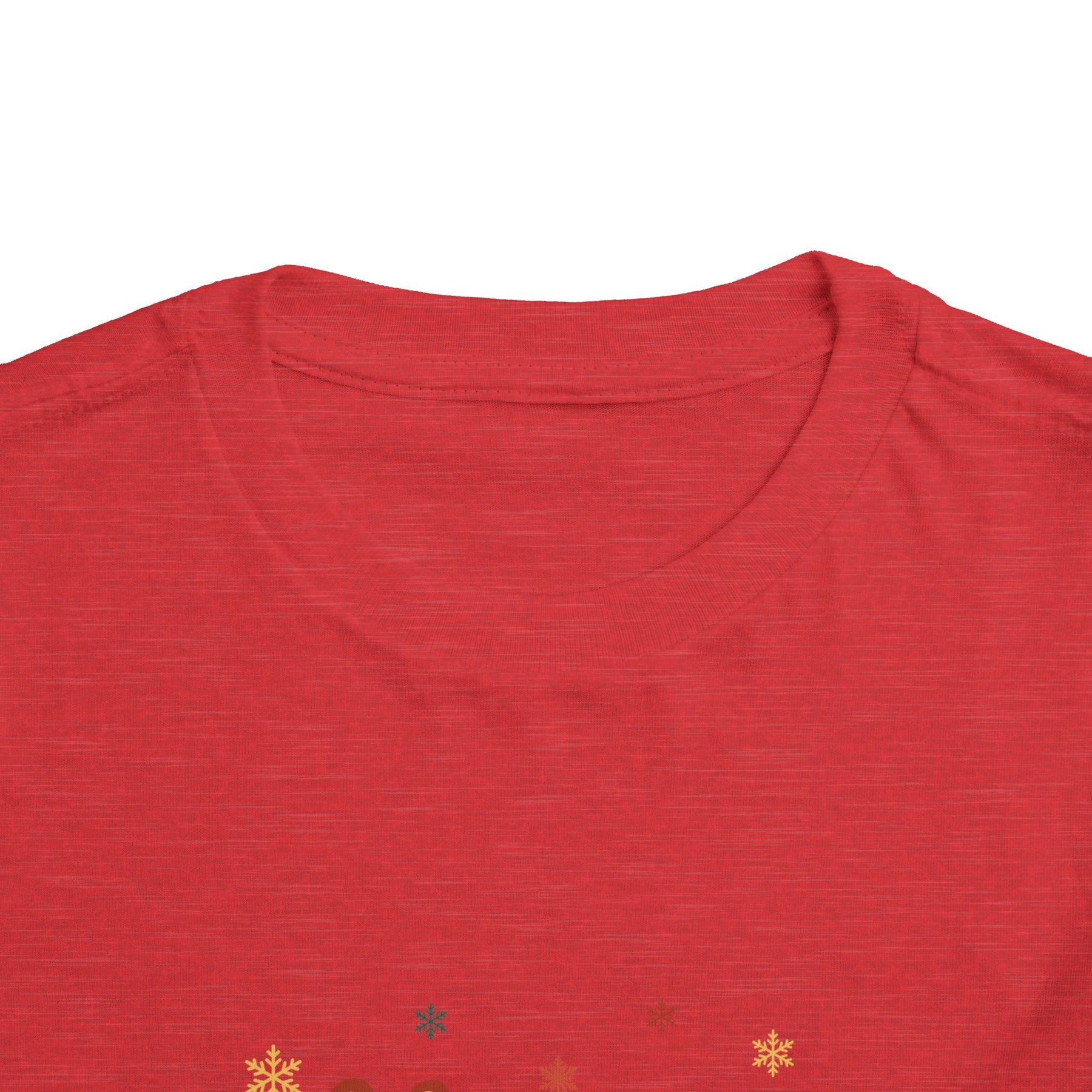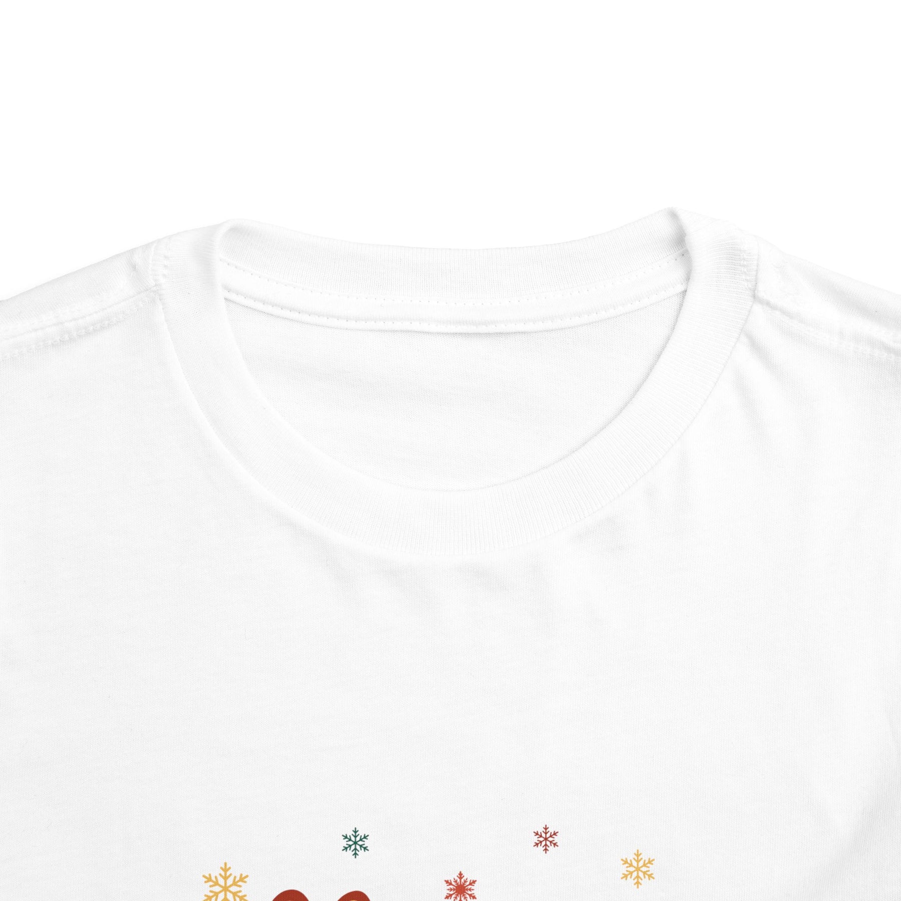The shirt slips into a child’s routine: holiday parties, casual family gatherings, or a relaxed morning opening gifts. It sits light and soft so toddlers can run, play, and pose for photos without fuss. The design reads playful from across a room and makes little moments — stacking blocks, stealing a cookie, or pointing at the tree lights — feel a bit more festive.