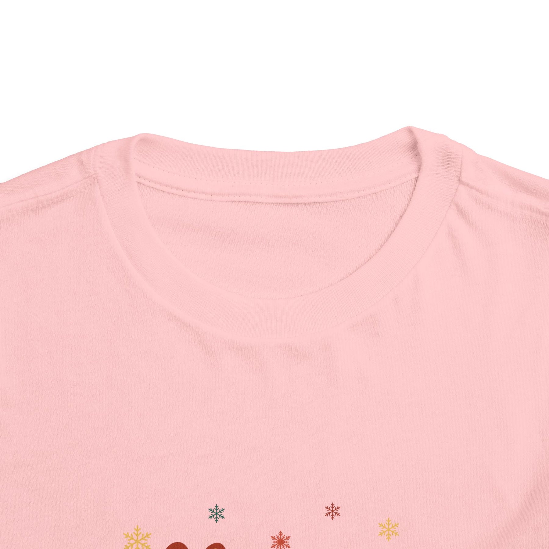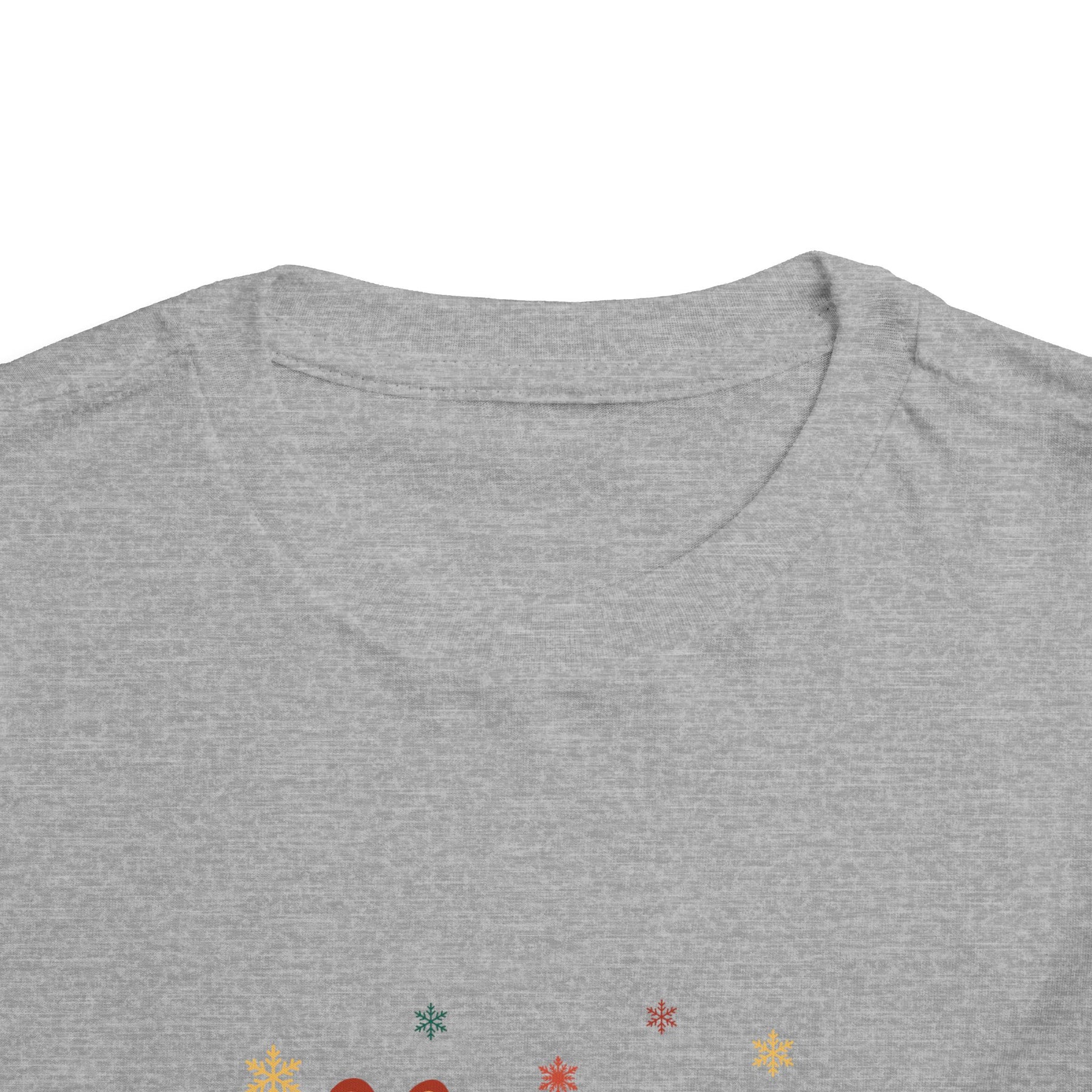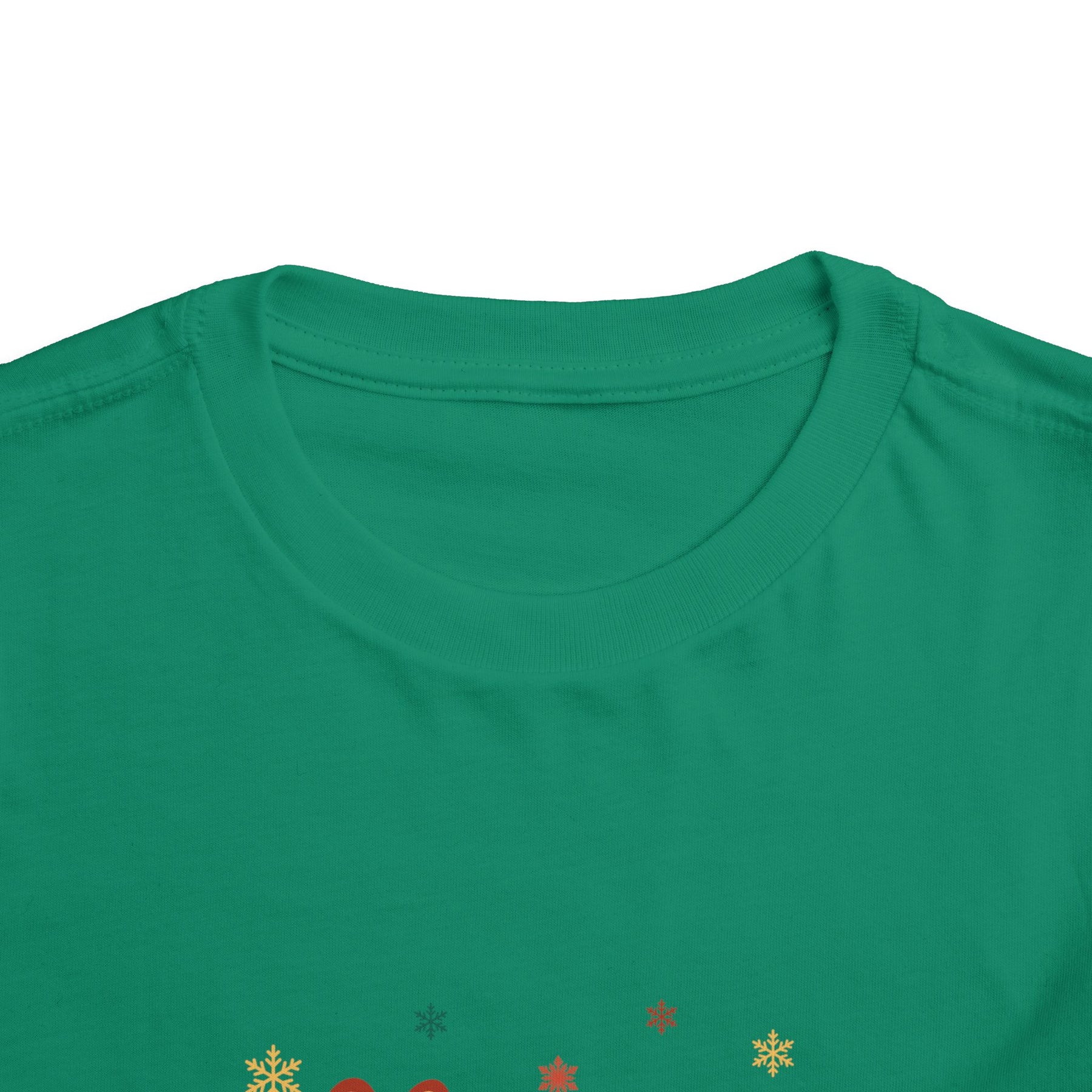 The shirt slips into a child’s routine: holiday parties, casual family gatherings, or a relaxed morning opening gifts. It sits light and soft so toddlers can run, play, and pose for photos without fuss. The design reads playful from across a room and makes little moments — stacking blocks, stealing a cookie, or pointing at the tree lights — feel a bit more festive.